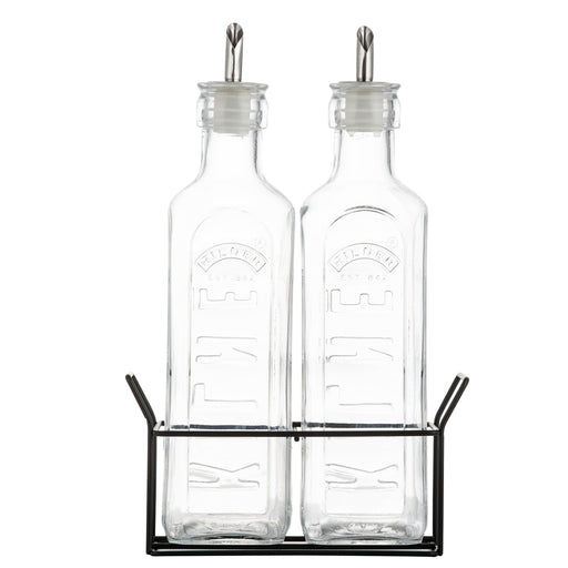 ENSEMBLE DE 2 BOUTEILLES DE 600 ML. POUR L'HUILE ET LE VINAIGRE. SUPPORT EN MÉTAL. CHAQUE BOUTEILLE EST ÉQUIPÉE D'UN BEC VERSEUR EN ACIER INOXYDA...