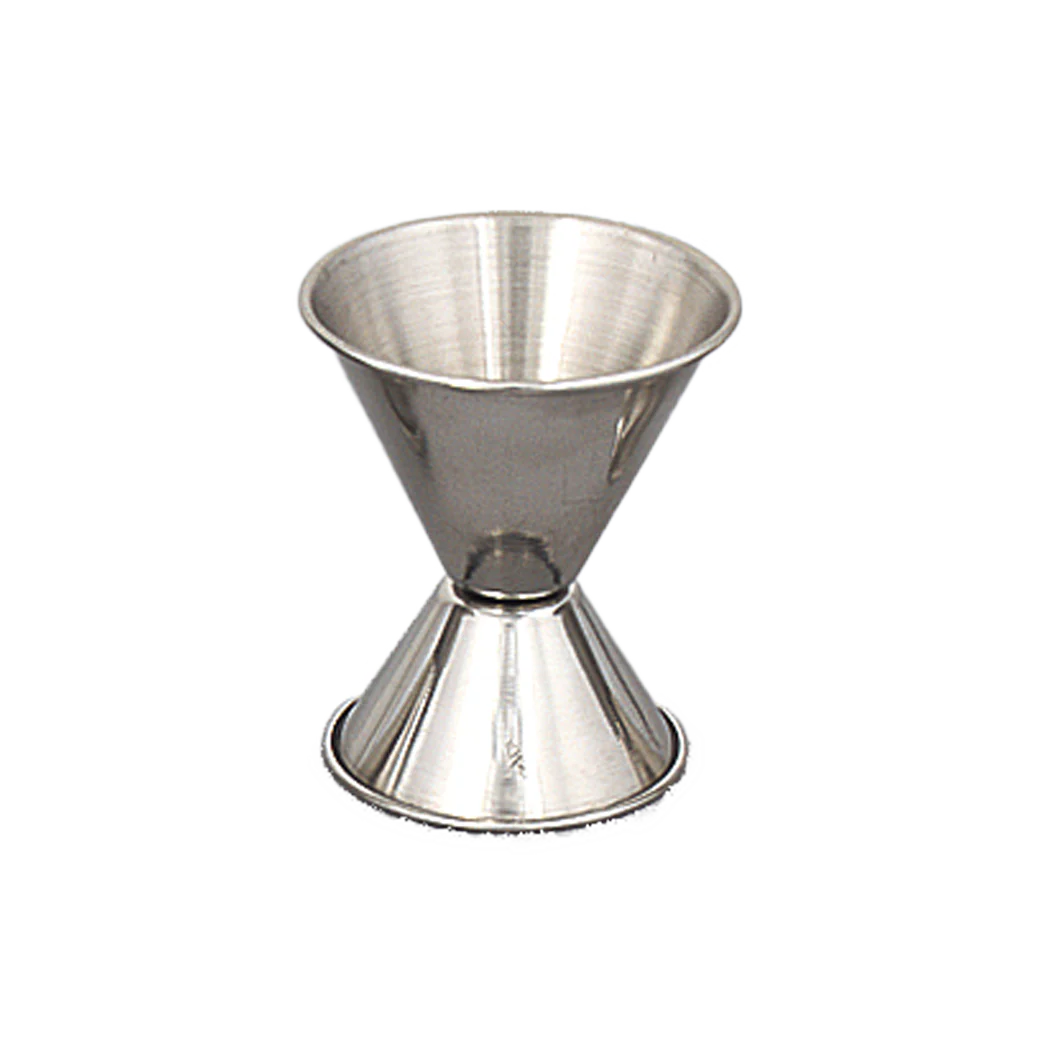 GOBELET DOSEUR DOUBLE EN ACIER INOXYDABLE, INTÉRIEUR SATINÉ. 0,75 ONCE/ 1,5 ONCE ( 22/45 ML)