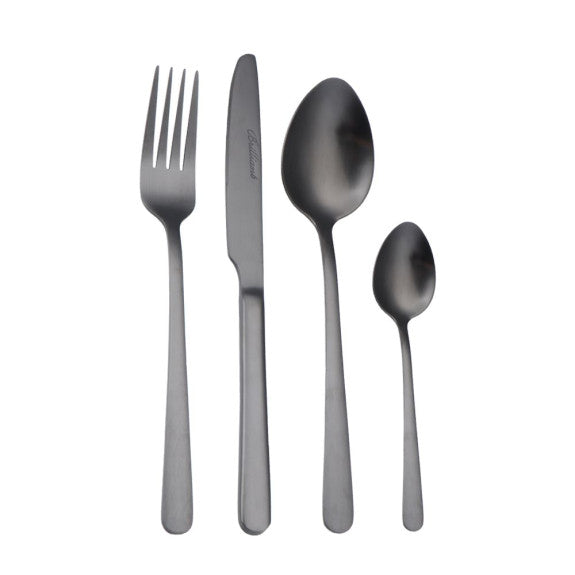 - Ensemble de 16 couverts comprenant 4 fourchettes à dîner, 4 cuillères à soupe, 4 cuillères à dessert et 4 couteaux de table