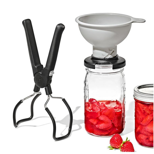 ENSEMBLE 2 PIÈCES DE MISE EN CONSERVE. COMPREND: UN ENTONNOIR RÉGLABLE ET UN PINCE-BOCAL. PINCES EN ACIER INOXYDABLE RECOUVERTES DE SILICONE POU...