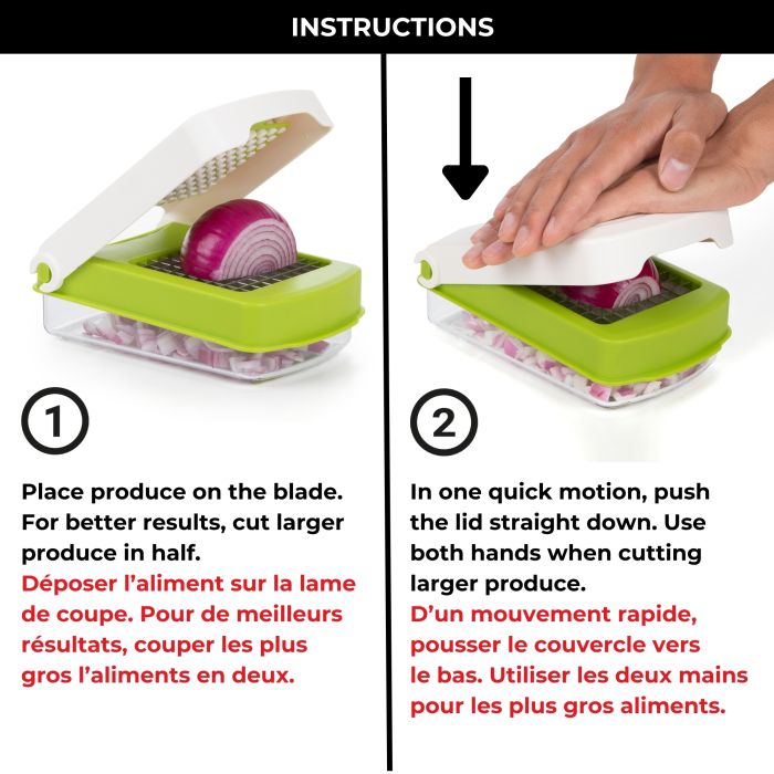 - Coupe facilement les aliments dans un seul mouvement rapide