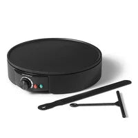 GRANDE SURFACE ANTIADHÉSIVE DE 30 CM. SERT ÉGALEMENT COMME PLAQUE POUR PANCAKES, OEUFS ET BACON. 1300 WATTS. ÉTALEUR À PÂTE ET SPATULE VONT AU L...