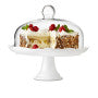 Vos confiseries voleront la vedette sur cette assiette sur piédestal en porcelaine blanche. Son rebord gracieux et festonné et son dôme en verre aj...