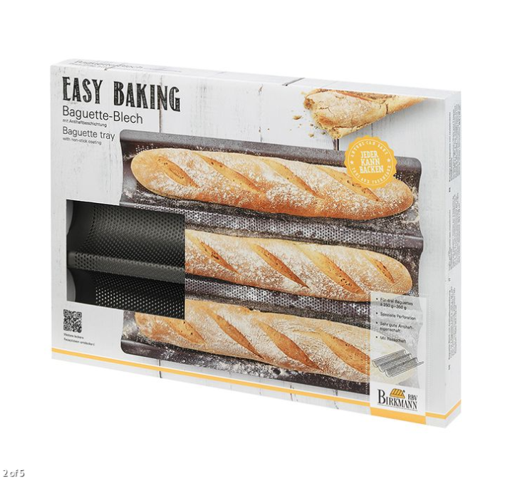 Avec la plaque à baguettes de la série Easy Baking de RBV Birkmann, préparez vous-même 3 baguettes en toute simplicité, comme un professionnel. De délicieuses baguettes complètes ou de seigle ? Ou généreuses avec des dés de jambon et des oignons frits, ou encore raffinées avec des ingrédients méditerranéens et des herbes fraîches. Laissez libre cours à votre créativité. Pour des baguettes parfaites, l'acier carbone de haute qualité et spécialement perforé assure une conduction thermique optimale et la fine perforation permet l'évacuation de l'humidité