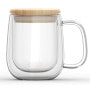 Créez une pause café ou un tea time unique et innovant. Deux couches de verre borosilicaté léger sont soufflées à la bouche pour créer un effet unique de verre dans le verre. Le résultat est une couche d'isolation thermique sous vide qui soit maintient les boissons chaudes et faciles à manipuler, soit préserve le froid de vos boissons sans condensation humide. Inclus est une couverture scellée en bois de bambou qui peut être convertie en sous-verre pour une expérience optimale.